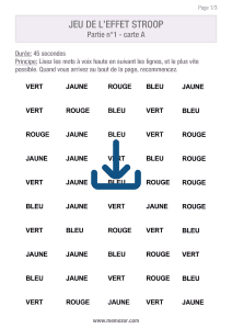 Principe : la personne doit identifier une caractéristique (par exemple, la couleur d’un mot) tout en ignorant une information contradictoire (comme le sens du mot). Cela mesure la capacité à gérer des distractions et à maintenir la concentration.